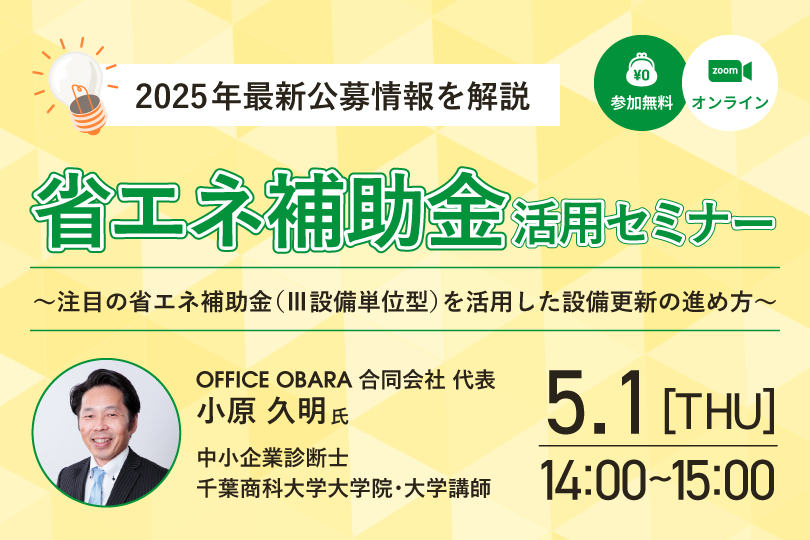 令和6年3月末日より、「省エネルギー投資促進支援事業費補助金(通称:省エネ補助金)」の公募がスタートしました。本補助金は、老朽化した設備の更新やエネルギー効率の高い機器への入れ替えに活用できることから、昨年も多くの申請が殺到し、早期に締め切られた人気のある補助金です。セミナーに参加して次回申請の準備を始めませんか?