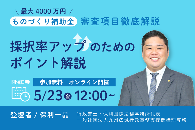 【第1回開催分アーカイブ配信中】ものづくり補助金 採択率UPセミナー|審査項目を徹底攻略!